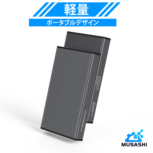 MUSASHI 2.5インチ SATAからUSB 3.0 工具不要 SSD/HDD外付けケース アルミ製 [SSDに最適化、SATA I/II/IIIに対応] MU-MR23F