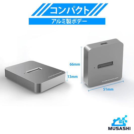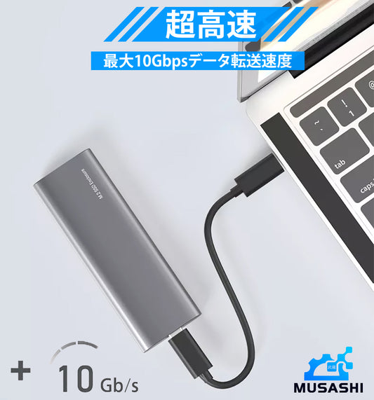 MUSASHI 工具不要 USB 3.1 M.2 NVMe SSD外付けケース |アルミニウムボデー|NVMEとSATA対応 M.2 SSD(Mキー/B + Mキー)対応「MU-M2809」
